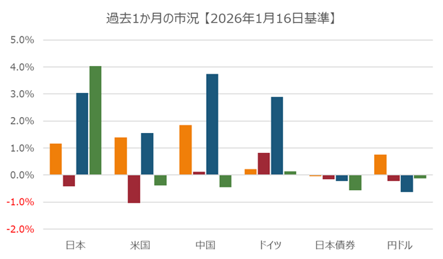 米国市場では金融とテクノロジーが値を上げ、株式市場はリバウンドした。四半期の業績が堅調であったゴールドマンサックスとモルガンスタンレーは、ともに株価が5%以上上昇。TSMCは年間の利益が堅調で米国の施設稼働より高くなることを公表し株価が5.1%上昇。Nvidia、Broadcom、Applied Materialsなどの株価も上昇した。欧州市場では、金融とテクノロジー関連がけん引して、株式市場は史上最高値を更新。TSMCが好決算を計上したことからテクノロジー関連にその影響が波及し、ASMLは11.2%株価が上昇した。また、第4四半期の業績が好調であったVAT Groupは14%株価上昇。金融では英国のSchrodersやスイスのプライベートバンクPartners Groupが値を上げた