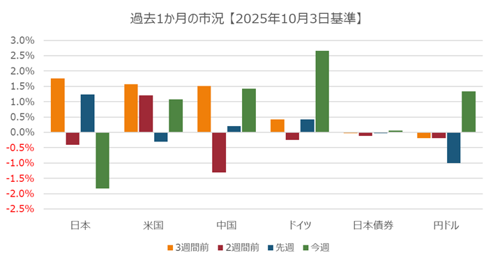 米国では連邦政府の一部が機能を停止したが、株式市場はテクノロジー株を中心に値を上げ、NASDAQは史上最高値を更新。ダウとSP500も値上がり。Teslaは四半期決算で堅調な数値を公表したが、連邦政府からの補助金の打ち切りを懸念して株価は下落。Occidental Petroleumは一部をバクスシャーハザウェイに売却し、株価は7.3%下落。Stellantisはブローカーからの評価が上がり株価上昇。欧州市場ではドイツのDAXが1.3%値を上げるなど上昇し、市場全体としても史上最高値を更新。Siemensが4.2%,Schneiderが2.3%値を上げたことから産業株が上昇。テクノロジー関連ではASMLが4.3%、ASMIが6.5%と値を上げ、テクノロジー関連も上昇
